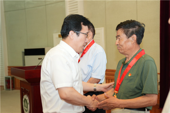 省委第二十五巡回指导组组长崔凤友,省委主题教育领导小组办公室王新明、董超出席读书班结业式。学校党委书记徐剑波向8位光荣在党50年、为学校建设奉献毕生精力的老党员颁发纪念章。党委副书记、校长冷畅俭为2023年新发展的学生党员代表佩戴党徽。