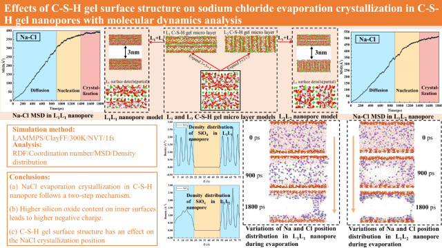 近日,水利土木工程学院尹航副教授和杨进波副教授课题组在《Applied Surface Science》在线发表了题为“Effects of C-S-H gel surface structure on sodium chloride evaporation crystallization in C-S-H gel nanopores with molecular dynamics analysis”的研究论文。杨进波副教授为论文第一作者,硕士研究生赵国庆为论文第二作者,尹航副教授为论文通讯作者。