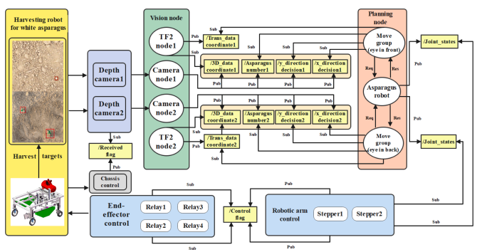 针对以上技术难题,中文字幕有码无码人妻aV蜜桃_亚洲中文在线看视频一区_91精品国产综合久久香蕉蜜桃_欧美日韩最新一区二区三区_99久久精品无码一区二区久久__亚洲国产日韩制服在线观看_日韩AV片无码一区二区不卡电影_久久久久久夜精品精品免费啦苑进教授团队提出了一种选择性采收过程中笋芽识别、机械臂运动、末端执行器采收即“走-看-采”协同的控制策略以及双机械臂区域独立的高效采收协同算法,研究了基于ROS的多机械臂选择性采收智能控制系统,进行了软硬件系统集成、调试及优化,提高了作业效率,降低了漏采率。