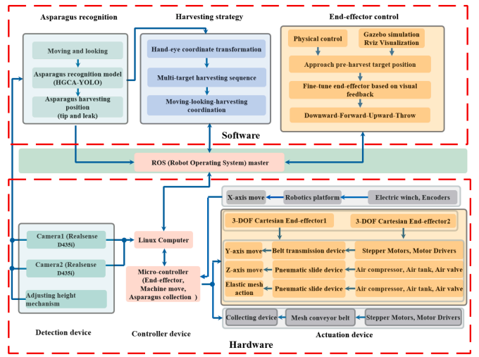 近日,我校机电学院苑进教授团队在《Computers and Electronics in Agriculture》,发表题为“A parallel dual-arm robotic control method of white asparagus based on moving-looking-harvesting coordination and asynchronous harvest cooperation”的最新研究成果。信息学院青年教师张萍老师为第一作者,机电学院苑进教授和辛振波副教授为文章通讯作者,刘雪美教授、戴念祖博士生、王子诺博士生参与了本课题研究,我校数字孪生农业技术研究中心George Papadakis教授共同参与了该研究。